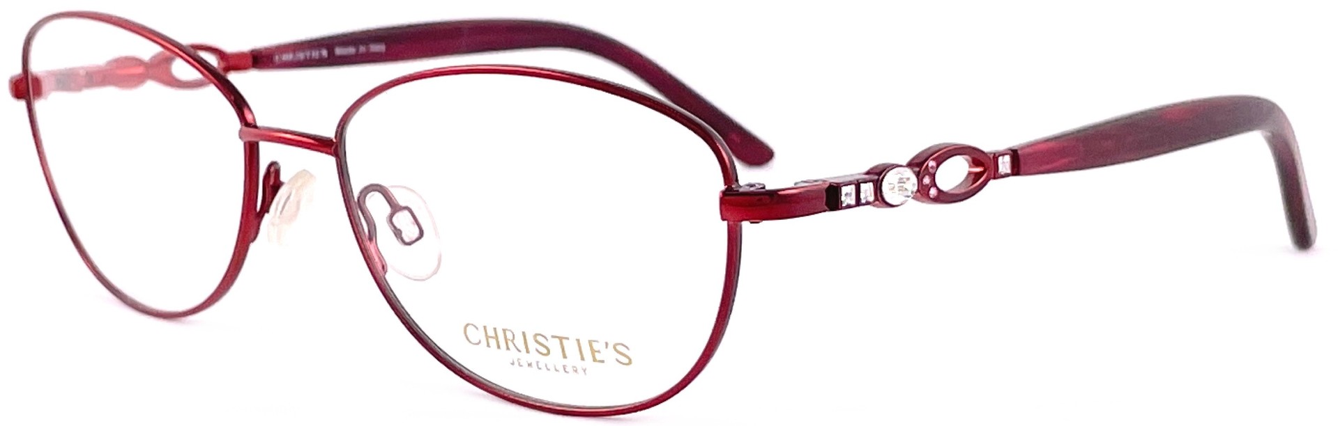 Okvir za naočare jednostavnog oblika, crvene boje i sa drškama koje krase diskretni cirkoni, privući će Vam pažnju da probate nešto elegantno.