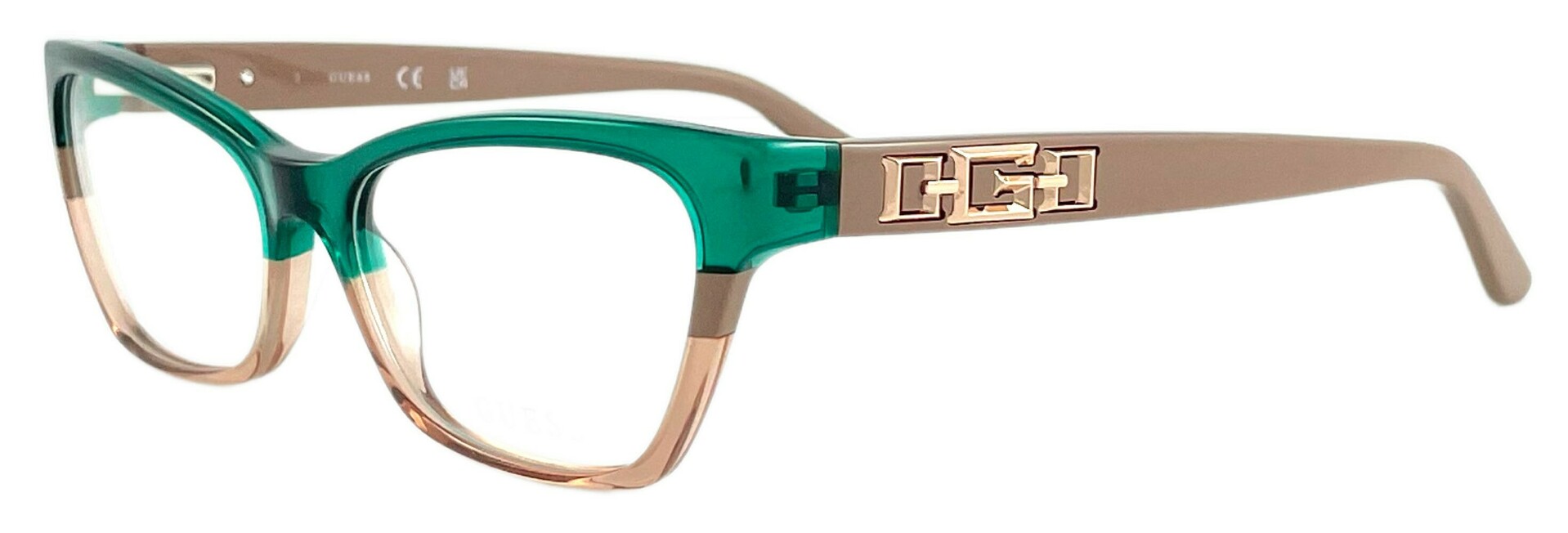 Naočare za vid Guess u nijasni zelene i kombinaciji nud boja elegantan i moderno dizajniran, a jednostavnog oblika za svakodnevno nošenje dioptrijski naočara.