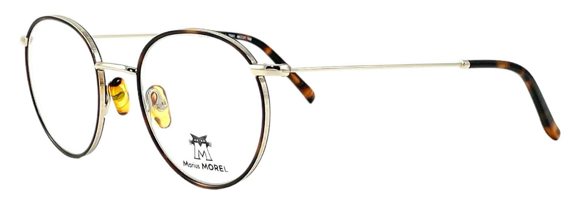 Diskretan dioptrijski okvir okruglog oblika koji je u frontalnom delu braon boje sa tankim zlatnim drškama.
