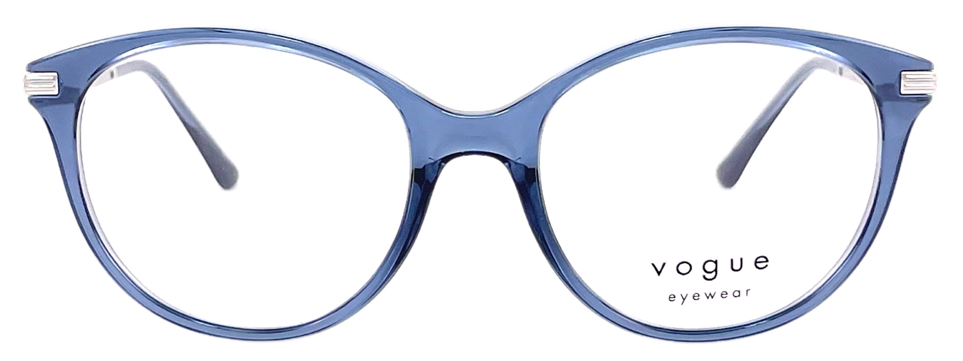 Vogue naočare za vid specifičnog ovalnog oblika u kombinaciji svetlo plave boje sa srebrnim drškama, inspirisan mladalačkim duhom može ispratiti Vaš lični stil.